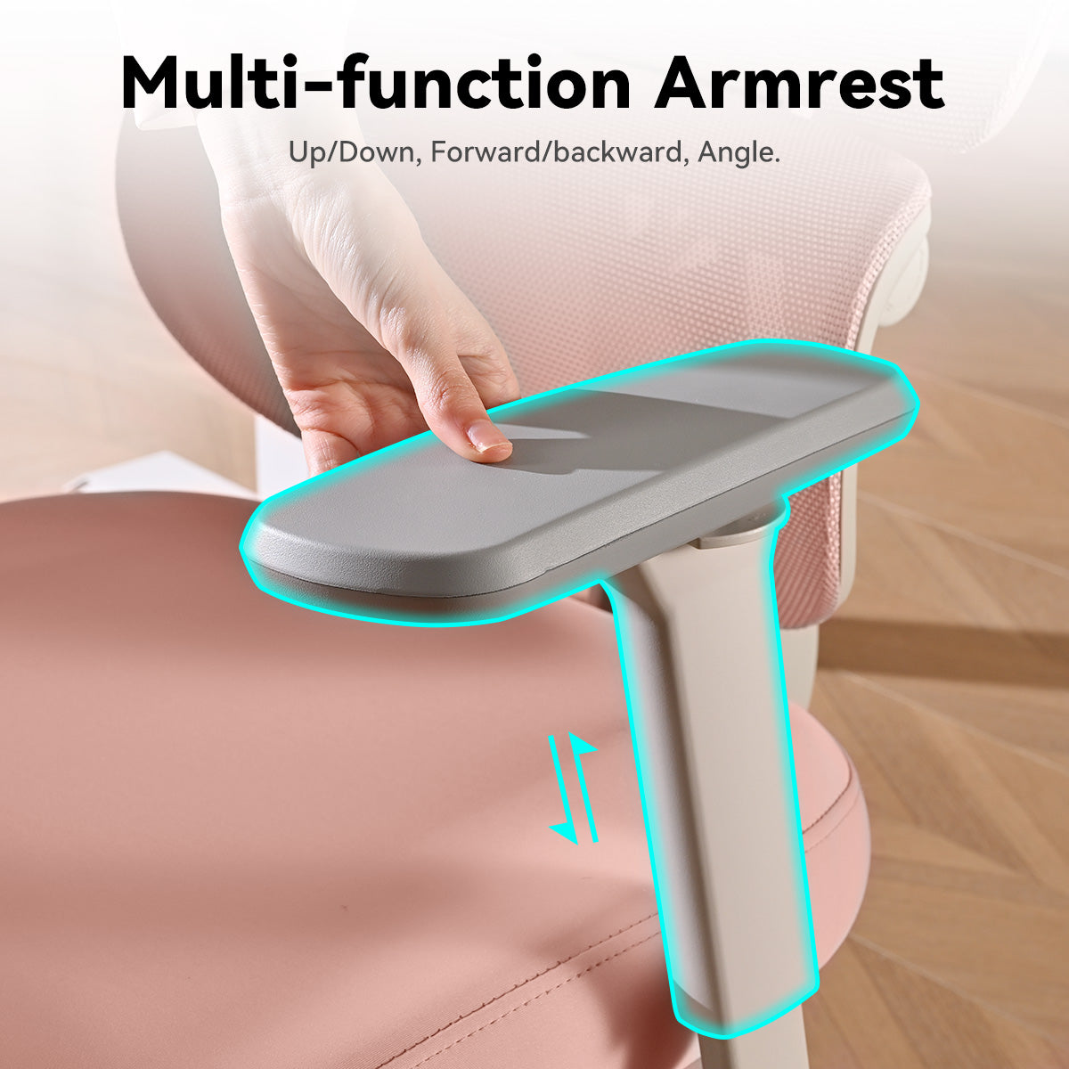 The armrests can be adjusted in height, pivot, and depth. The surface of the armrests is wide and made of comfortable material.